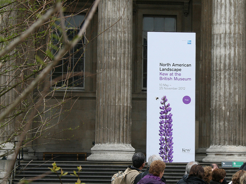 Concept and design of the key visual, advertising campaign, and in-house graphics for a garden exhibition featuring North American plants in the courtyard of the British Museum.