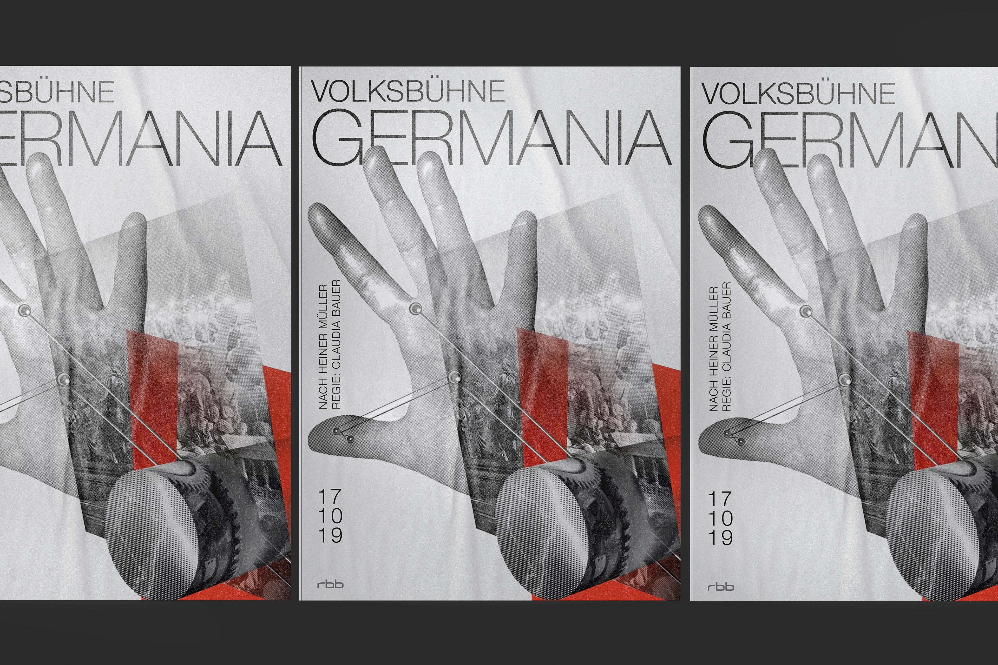 For the 2019/2020 season, a visual concept was developed for the season theme “Geschichtsmaschine / History Machine” and individual key visuals for the premieres in the main theater. Illustrator Marie Emermann was commissioned to create the illustrations.