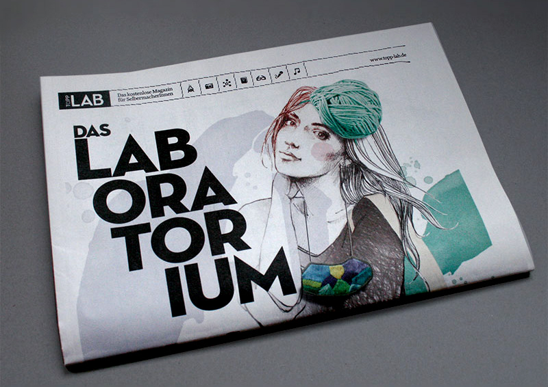 Art Direktion und Design für das Zeitungsformate DAS LABORATORIUM für den ToppLab-Verlag, Stuttgart. Auftraggeber: Lauffbildwerkstatt.