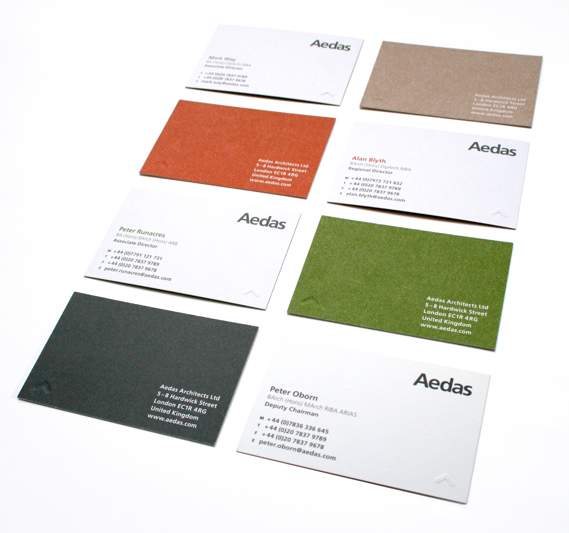 Redesign der Visitenkarten. Druck mit Pantone Metallic / Blindprägung. Individuelle Farben für die einzelnen Sparten.