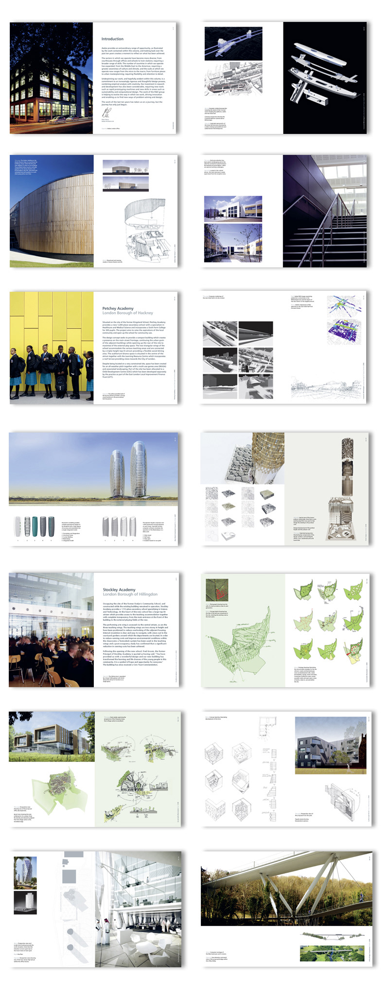 Visuelle Konzeption, Gestaltung und Produktion des "Selected Works"- Buchs der internationalen Architekturfirma Aedas in London. Redesign der Visitenkarten. Webdesign für Research and Development.